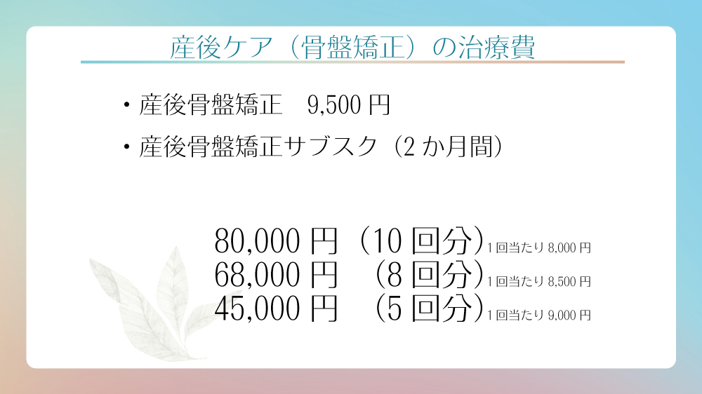 産後の骨盤矯正をすることが、外見、内見的に健康なため、確実にケアをすることをお勧めいたします。